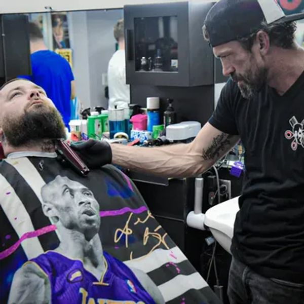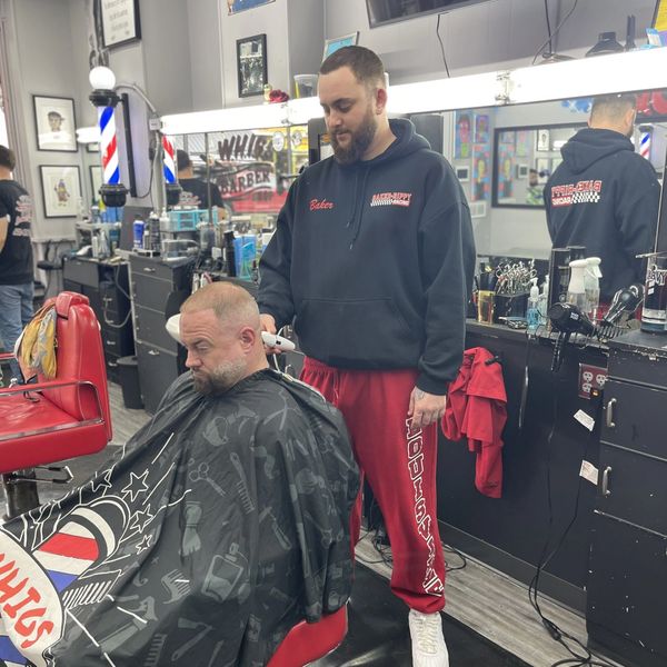 Travis is a masterful barber with many years of experience on all hair types and heads! Razor work, beards, shaves, designs - any style you can think of - Travis has mastered. Bring in your own ideas and vision or trust Travis to your style. A true professional at work. As you can see from the photo, even the professionals love him! Travis makes you feel at home with every cut. He loves new clients and challenges and welcomes all!